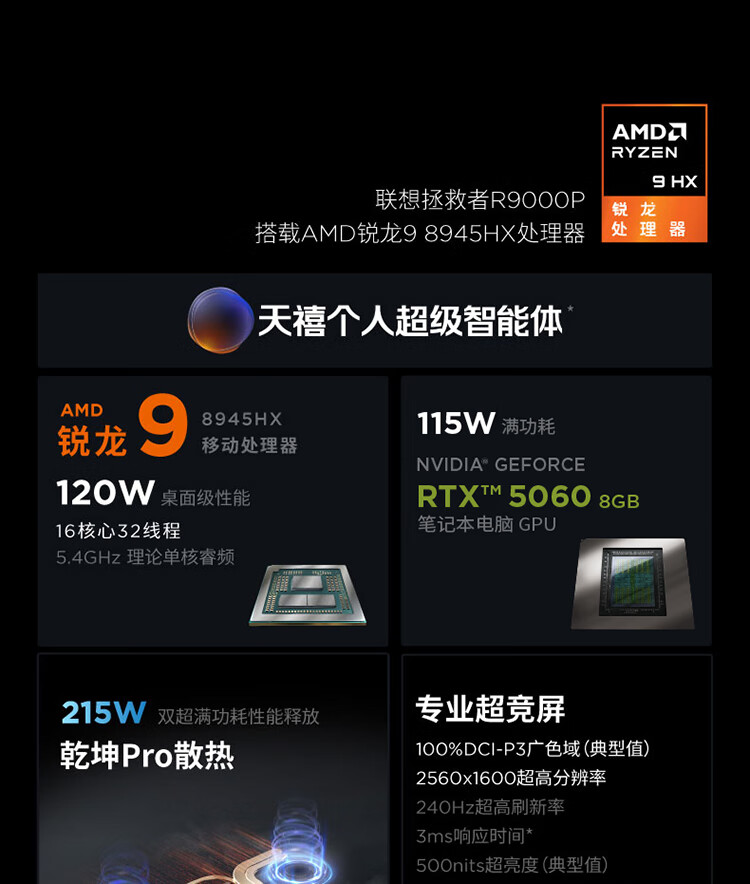 联想游戏笔记本-拯救者R9000P 2025 R9 8945HX 32G 1T RTX5060 2.5K 240Hz AI元启